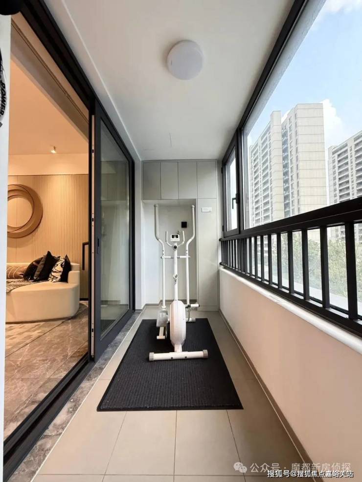 南向宽幕阳台,可以打造出多重场景,除了晾晒、洗衣之外,也可以健身、画画、品茶聊天。