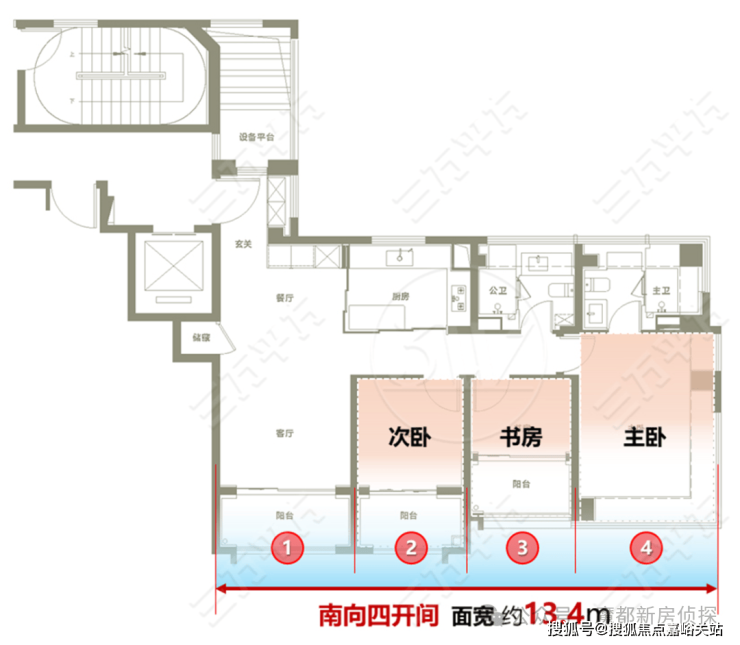 1、四开间朝南,超140㎡户型尺度体验
