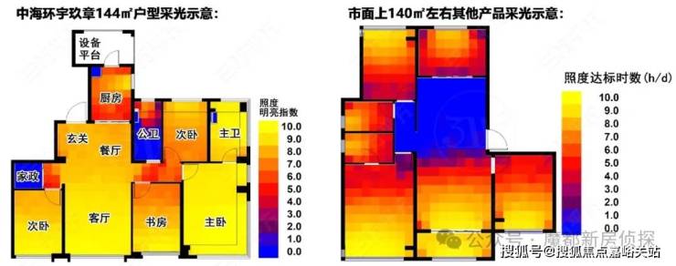 同样的,市面上其他140㎡左右产品,暗区面积较大,采光通透性较差。