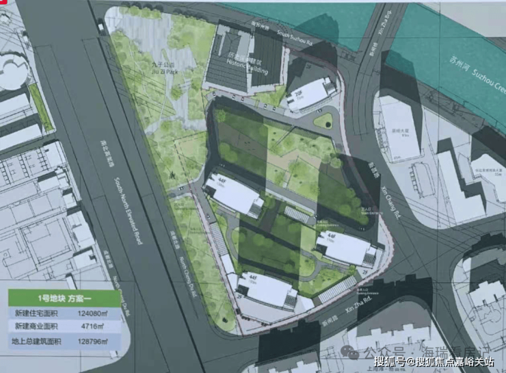 地块规划示意图地块的开发方案已正式公布:规划住宅面积18.2万㎡,商业面积2万㎡,总投资额335亿元,1号地块将新建3栋165米的超高层住住宅,7号地块全部是3层以下的历史风貌别墅。