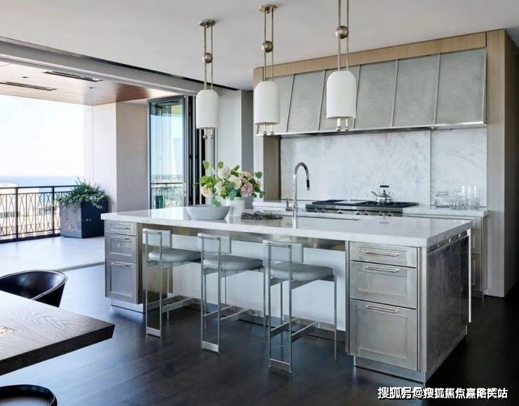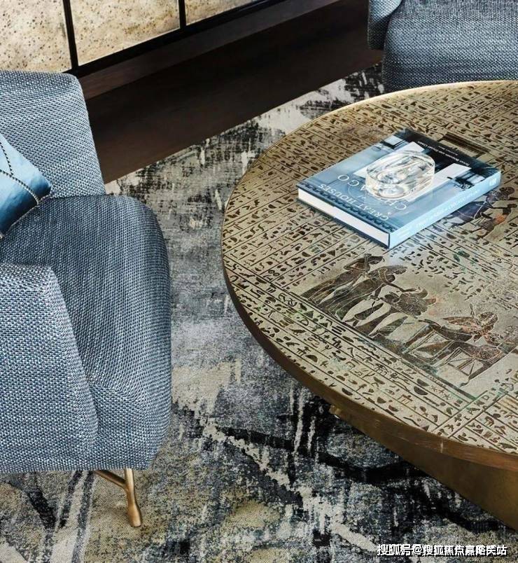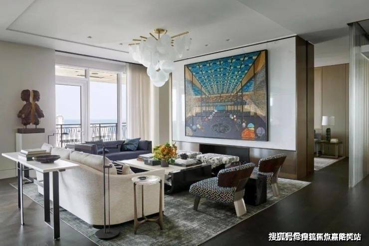 从客厅开始,整个空间都遍布着蓝色的元素,设计师以星座为主题进行设计,搭配上JamesThomas的茶几、HollyHunt的沙发、Minotti的扶手椅和AndriannaShamaris的边桌,打造既高级又充满梦幻感的居家空间.