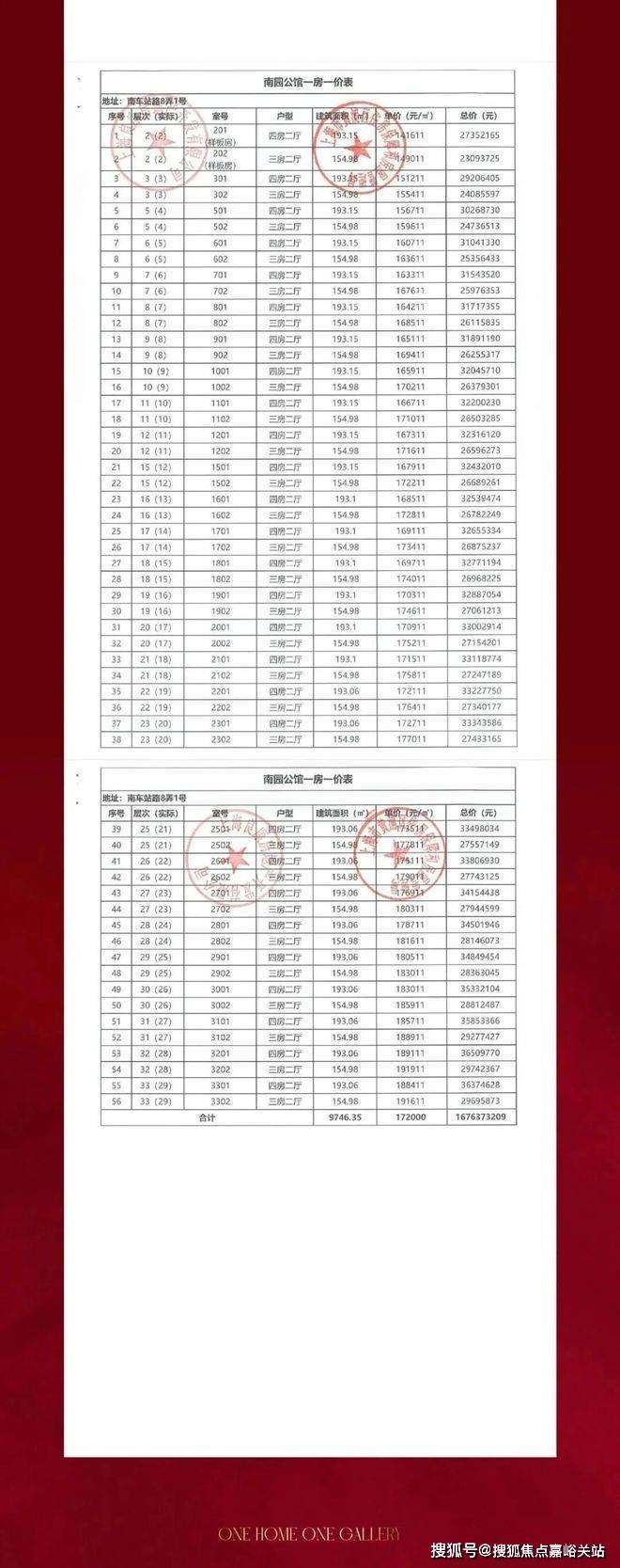 一房一价表:
