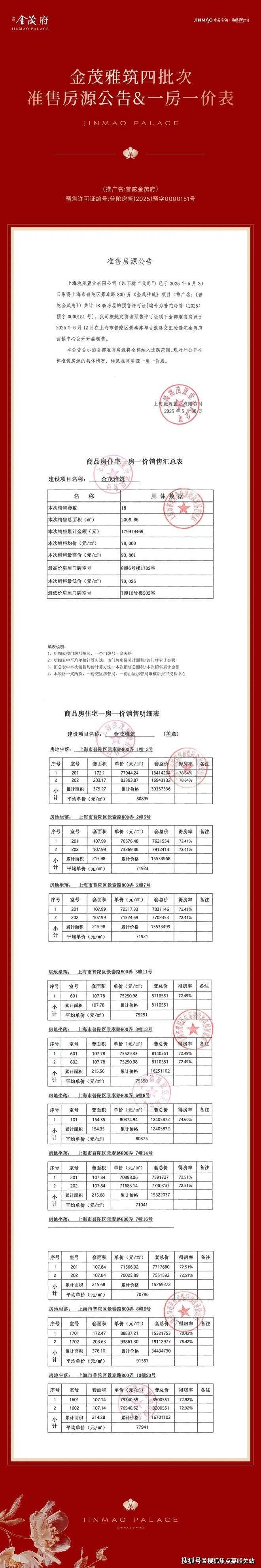 在金茂上海发布的公告中,明确写到项目品牌(推广案名) 由“景泰府”正式升级为“普陀金茂府 这也是继西郊金茂府、大宁金茂府、虹口金茂府后的上海第四座金茂府。