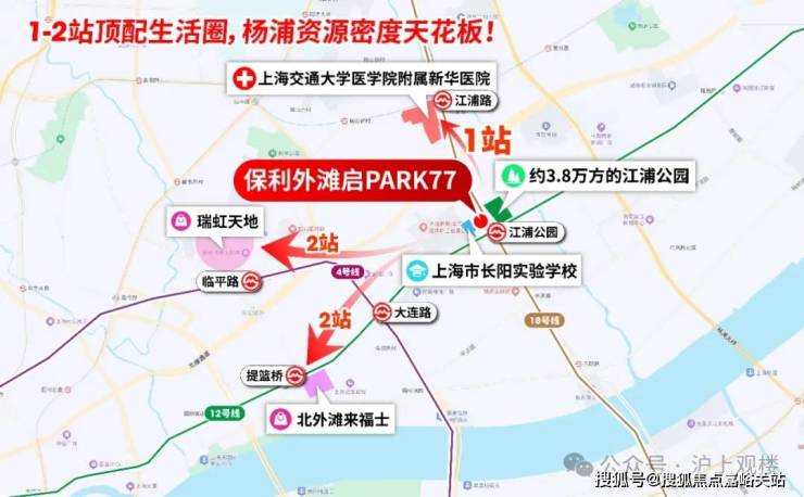 更难得的是, 1-2站范围内,三甲新华医院、北外滩来福士、瑞虹商圈、江浦公园、长阳实验学校等顶配资源一应俱全。