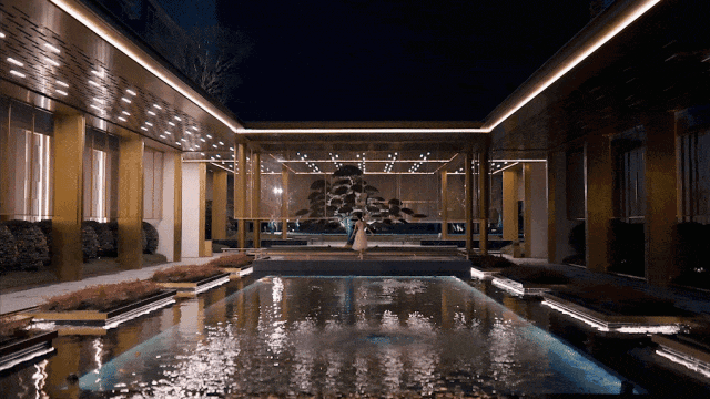 继一进的酒店环岛水景落客后,访客随即进入第二进、“游廊水榭”,并与第三进的锦鲤池畔共同构成了一条礼序水景轴线,以儒门之礼,展现东方礼序之道。