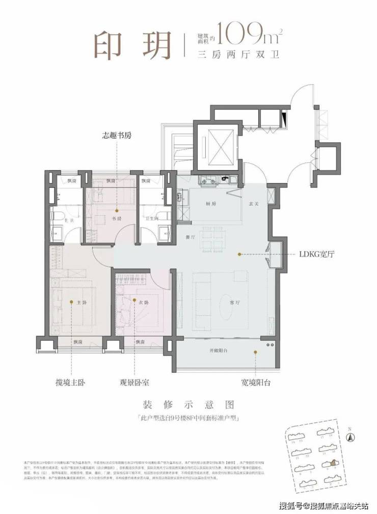 建面约109㎡3房2厅2卫