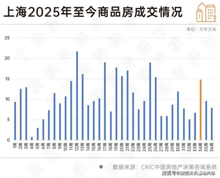 从市场反馈来看,2025年8月25日,上海新政发布后,2025年第34周(8月25日至31日)新房成交明显上升,达14.77万平方米,环比上涨119.37%,同比上升1.5%,随后受新盘供给影响出现回落,截至第36周(9月8日至14日)降至7.86万平方米。