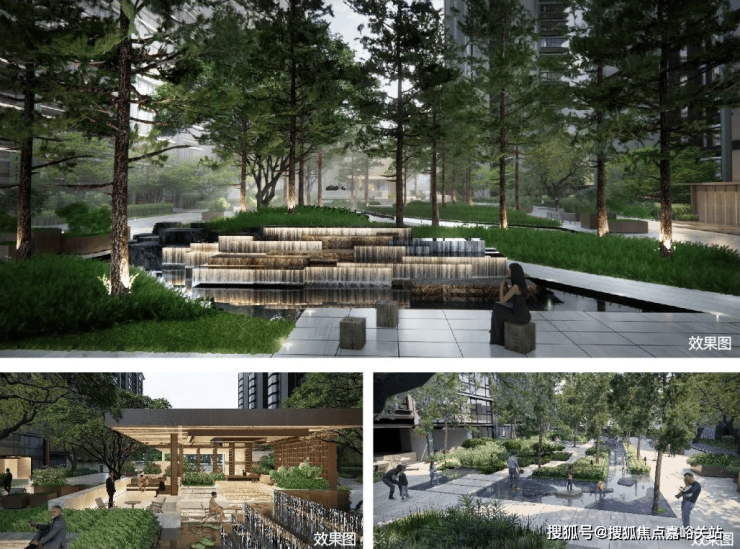 在细节营造方面方面,项目打造“社交花园、睡莲花园、森之花园、流水花园、童趣花园、水岸花园、时光花园”共七大活力主题花园,穿插在楼宇之间,定制每一栋独特的生活场景。同时还营造了三片戏水活力场,随着社区水流的流淌,形成“溪谷、悬瀑、落泉”不同的水景剧场。让生活场景向水而生,并逐渐向园林渗透,最终融入其中,形成水与景的和鸣之势,营造自然之上的意境。