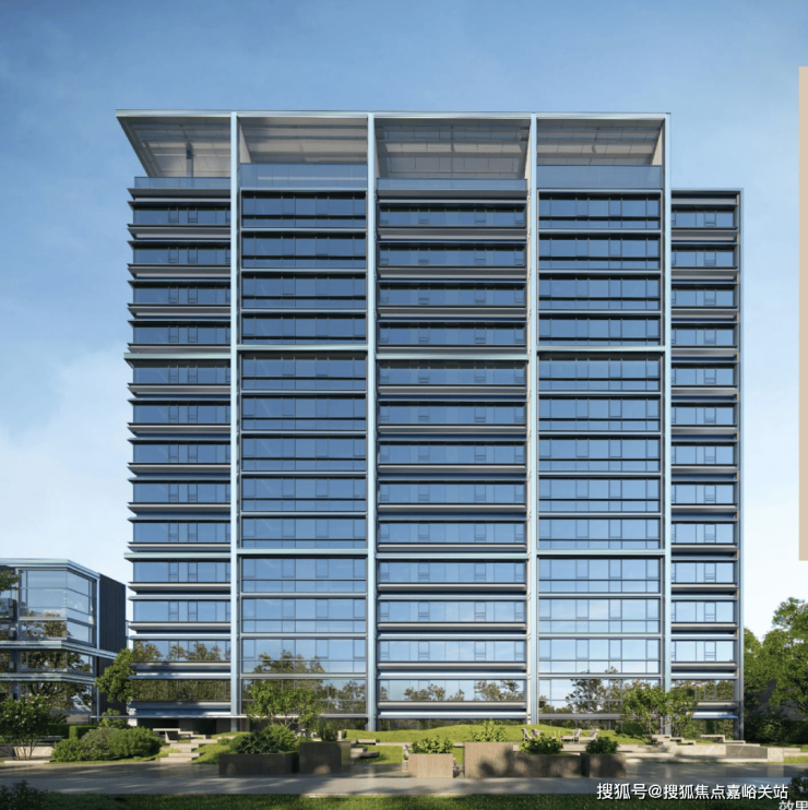 时代之城天青色外立面源于宋代汝窑,以汝窑同款工艺,配以“天青釉”加以点缀,赋予了建筑独特的质感和深度,结合浅色装饰线条,使得建筑散发着清新淡雅的气质,在似玉非玉间,镌刻时代注脚。