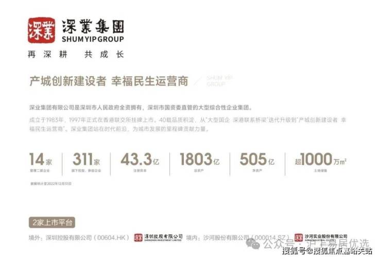 深业集团是深圳市人民政府全资拥有,深圳市国资委直管的大型综合性企业集团,成立于1983年,1997年正式在香港联交所挂牌上市。