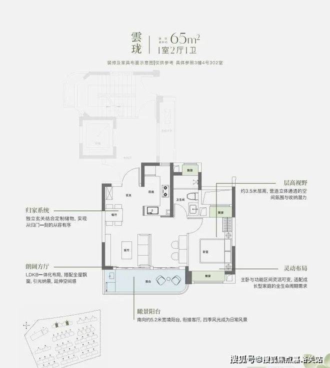 约9.8米南向面宽,配以超大尺度跑道式阳台 ,让室内外交融共生。