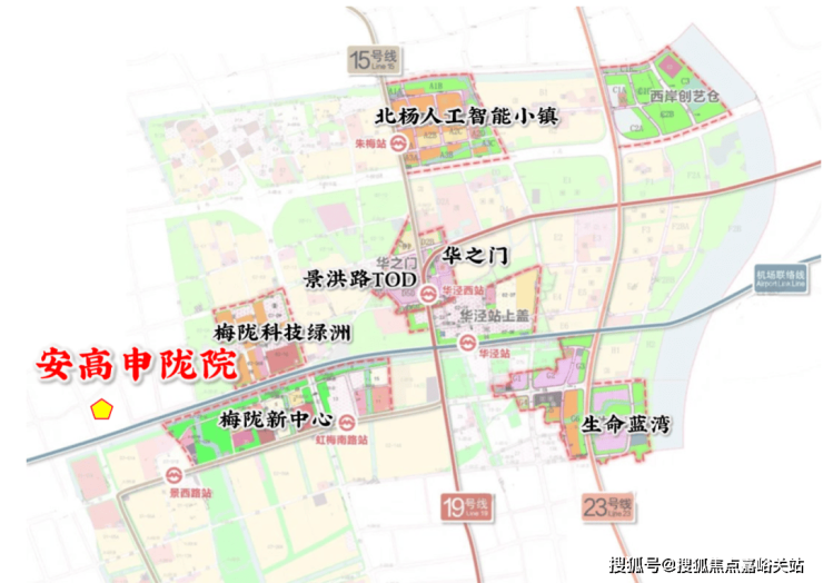 而如今均价仅约74239元/㎡的安高申陇院,涵盖了 15号线、机场联络线、19号线 (在建) 、23号线 (在建)4条高能级轨交环伺。