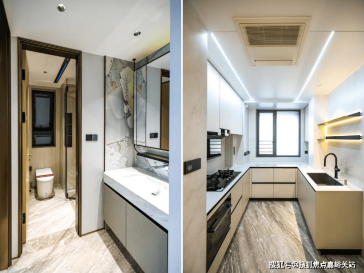 还有诸多细节,我不多说了。如2个户型都做了 通顶玄关柜交付 (内含除臭精灵) 、厨房门采用悬轨无地面链条 设计等。每个高颗粒度的细节,不仅是人性化的考虑,更兼具美学。