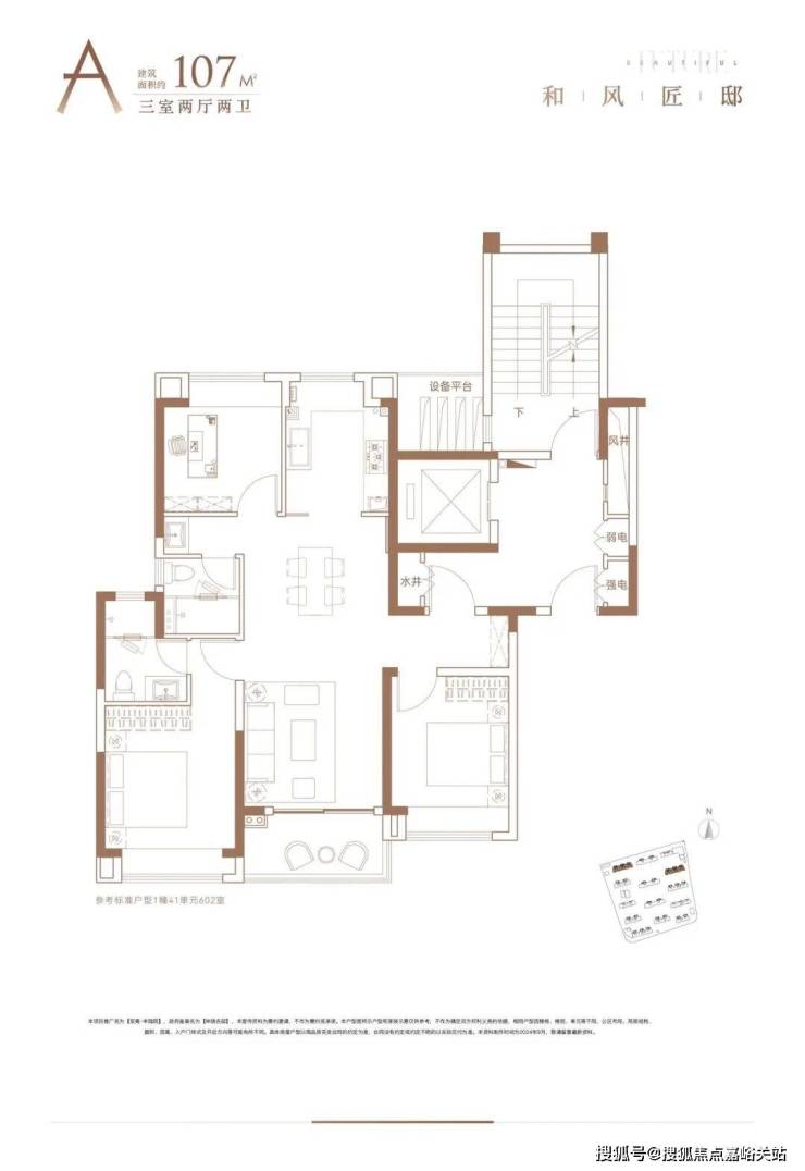 ①以建面约107㎡3房为例: