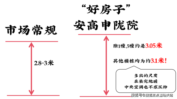 首先是层高,目前好房子的层高标准是不低于3米,而整个小区建筑层高除1幢、5幢约是 3.05米 ,其他楼栋均为约 3.1米。