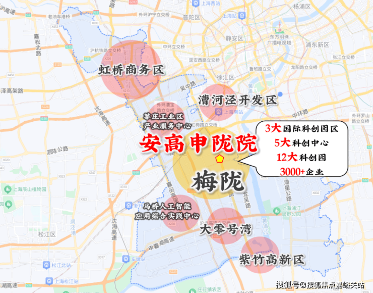 项目所在的梅陇板块,无论是配套能级,还是产业发展都优势强。