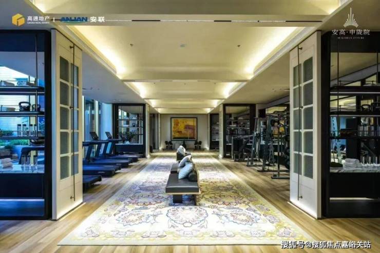 申陇院打造约1700m下沉式海派双泳池会所,涵盖水吧、成人/儿童双泳池、健身房、棋牌室、桌球室、影音室,不负“家楼下的度假场”之名,业主于此开展日常休闲活动,举手投足间尽显雅致品味。