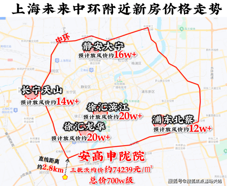 但安高申陇院不仅直线距离中环仅约2.8km,价格还有着联动价制约。