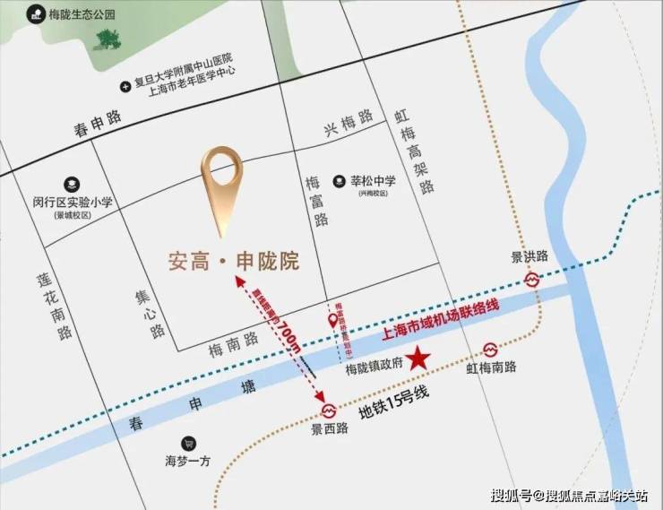 其中直线距离15号线景西路站仅约 700米内 (待梅富路桥建成后) ,可轻松直达徐汇等市区板块。
