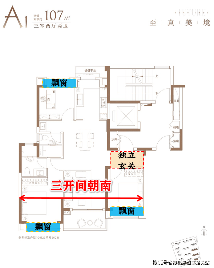 项目深刻洞悉这一痛点,打造建面约107㎡3房以及建面约128㎡4房。