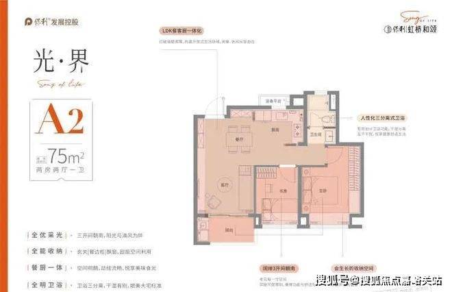 A1户型【建筑面积约74m² 两房两厅一卫】