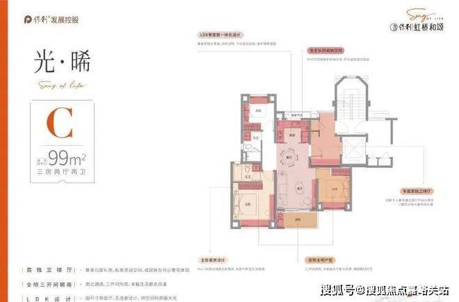 3.户型齐全,74-99m²的2房-3房,满足各种居住需求;一楼局部架空层休闲设计。