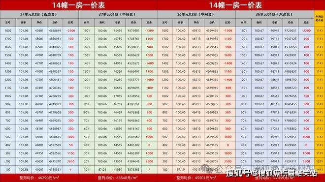 按位置分:同一栋楼中,边套价格高于中间套,东边套价格高于西边套。比方说在14#中,西边套4.6w+、东边套4.7w+,明显高于中间套的4.5w+的均价。