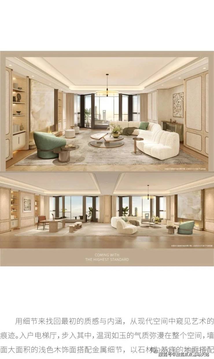 住宅部分全部大平层(复式)设计,单套面积约370-1500㎡,全部精装交付。