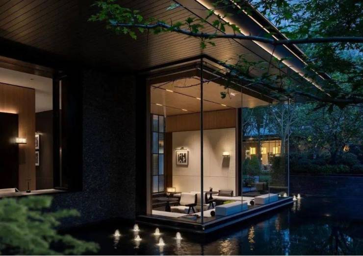 社区主入口更是兼具豪华酒店与海派元素设计风格,挑高约6米的入户大堂、水系景观与艺术家共创作品交相辉映,奢华感和高级感拉满!