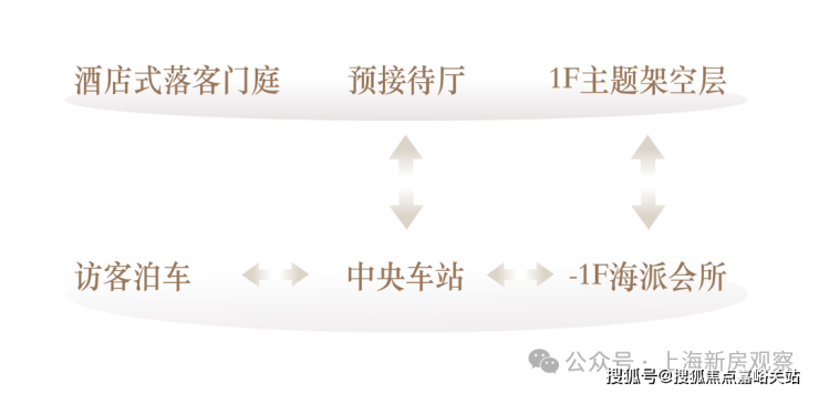 作为地下的驱车通道,本身也是 整个空间的枢纽平台,连通海派会所、地下庭院,高效抵达的同时,保证了业主的私密性,营造独一份的尊崇体验。