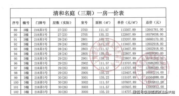 上期一房一价表及如下