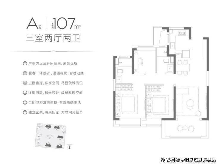 尤其是项目目前建面约107㎡的主力户型,更是集LDBK一体化、玄关入户、动静分区设计、U型厨房、双卧飘窗、强大收纳等多重优势于一体,在功能性与舒适度上几乎都做到了极致!