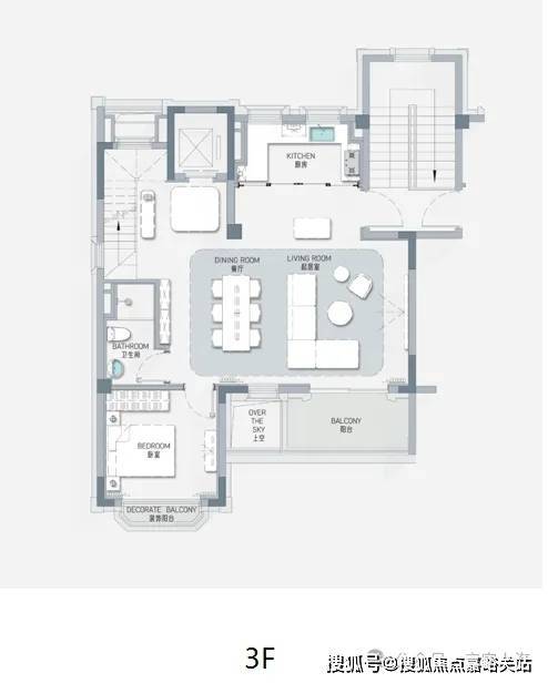 项目通过一楼家庭庭院,二楼星空露台,三楼罗密欧阳台,复原经典的三段式设计规制,还原出武康路罗密欧阳台的经典邬达克式摩登场景。