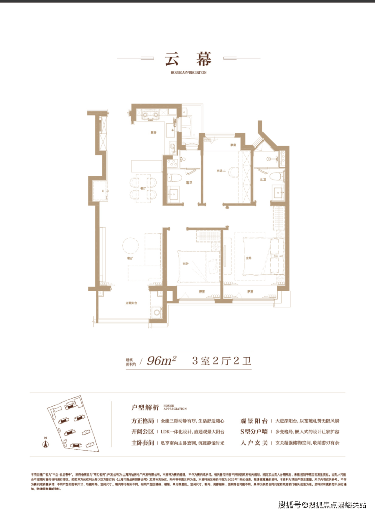 建面约96㎡,充分从居住者的角度考量生活动线、舒适度与生活感。S型的分户墙,褪去呆板,为家具预留更多的空间;LDK一体化的设计打破空间局限,解锁更多的生活场景,也拉近家人间的距离;主卧套间自在独处,生活的优雅时刻尽显……