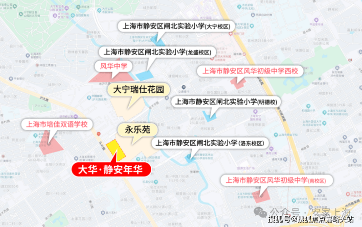 2、静安学霸圈,占领教育资源高地。周边有闸北实验小学和风华初级中学等,双一梯队名校环伺。