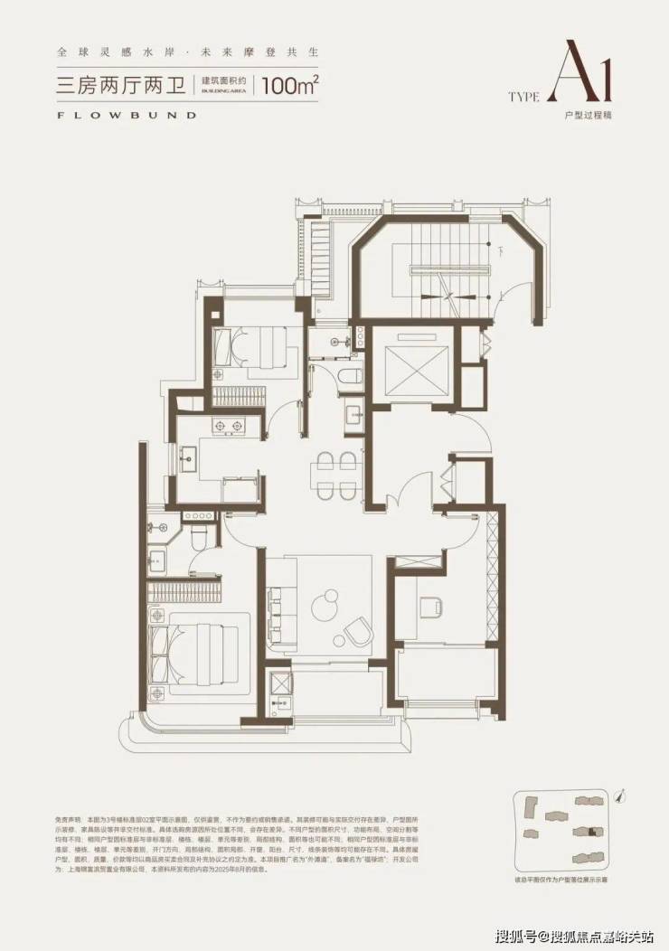 100㎡级入门型, 三开间朝南,南北通透,全明户型。 配备独立梯厅和圆弧阔景飘窗,市面罕见的高配。