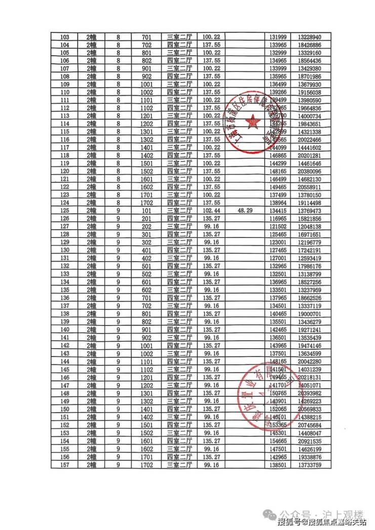 完整一房一价表如下: