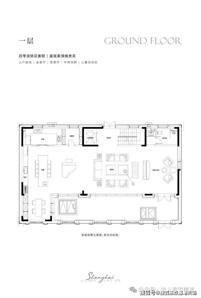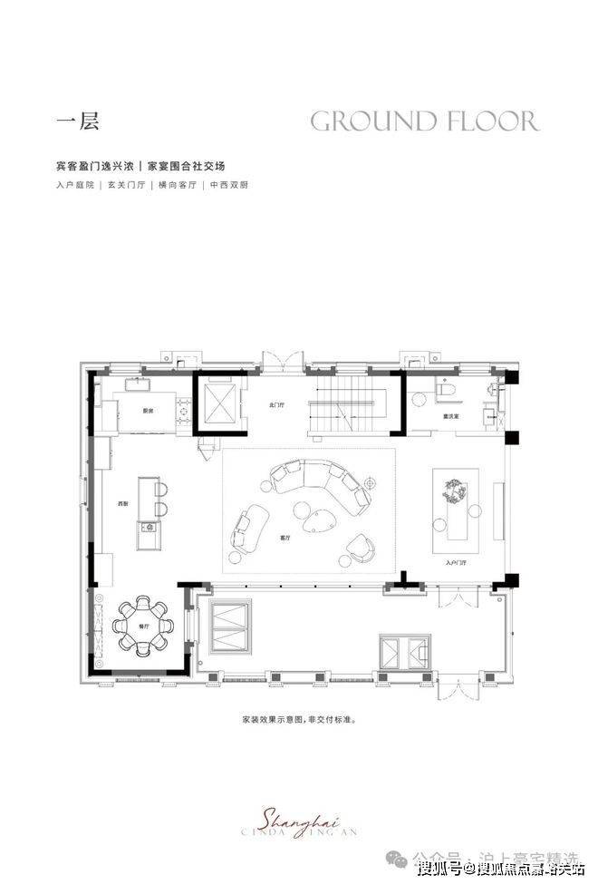一层藏奢于境,入户门厅,阔绰横厅场域,生活从容尽显