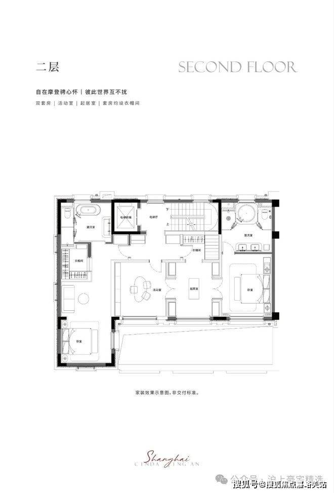 二-三层静谧于心,共享起居室多套房设计,尊崇栖居礼遇