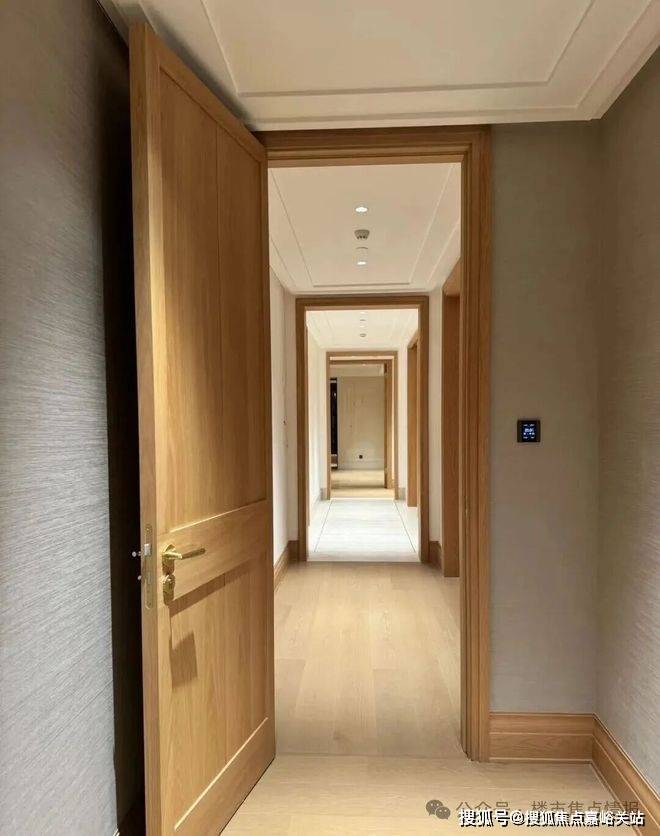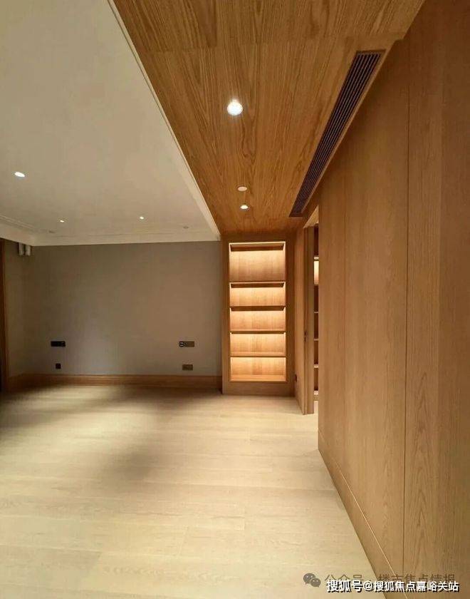 硬装上以木饰面和米色石材做结合,物料原始肌理感,表达经历时间后的沧桑痕迹。大理石地面镶嵌精致金属条,保留材质的原始感,木饰面配柔和灯光,调和出安宁澄澈的归家氛围。