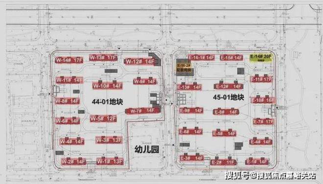 45-01地块拟建16栋11-17层高层住宅,其中E-14#为保障房。