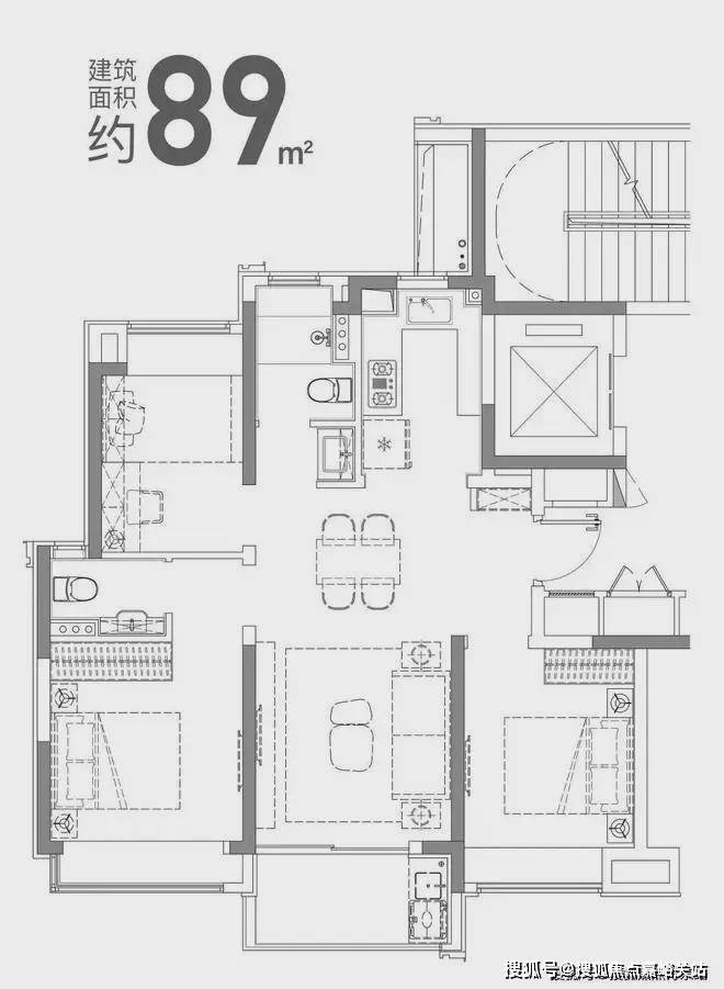 建面约89㎡3房2厅1.5卫
