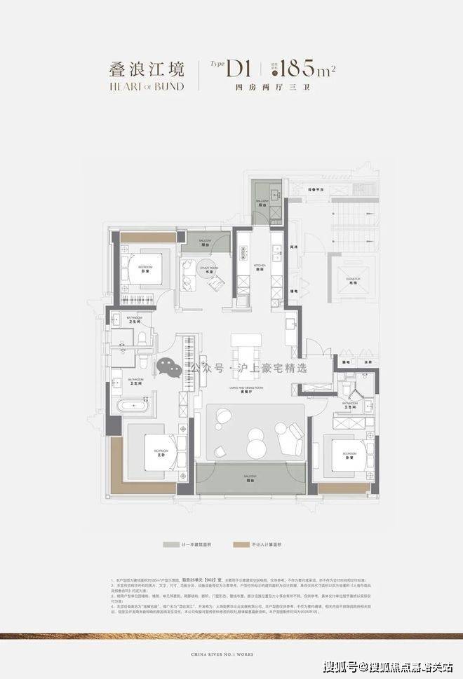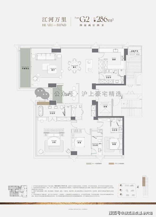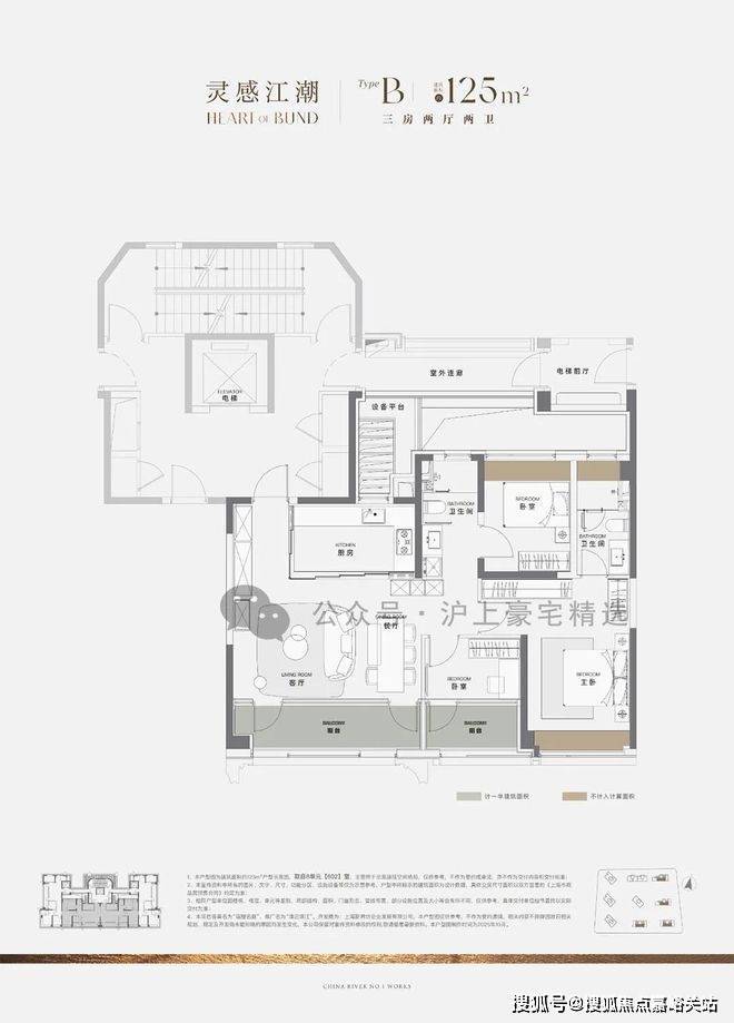 过去10年上海一线滨江住宅,大户型是绝对主流,120㎡级3房产品从未出现。澐启滨江是因2021年后滩九宫格有中小套型指标要求,得以推出120㎡级产品。