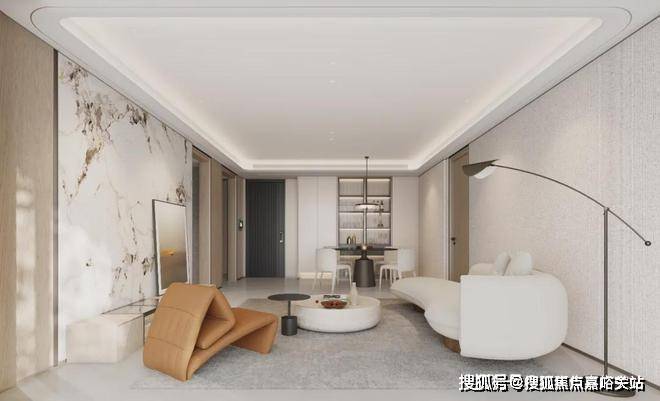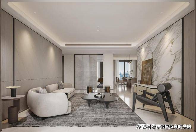 古北99的建筑立面在采用天然黄金麻石材肌理搭配灵动的线条,柔化了石材的坚硬质地,端庄典雅的同时更显时尚。
