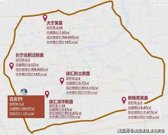 古北99地处内中环间,距离内环线仅1.2公里(数据来源:百度地图),往期均价11.3万/㎡,未来内中环可能再也找不出这个价格的新房了!
