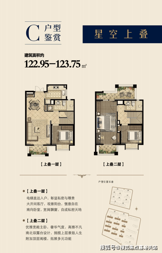 叠墅有建面约82-83㎡的下叠、134-136㎡的中叠和122-123㎡的上叠,满足不同家庭结构和生活需求。