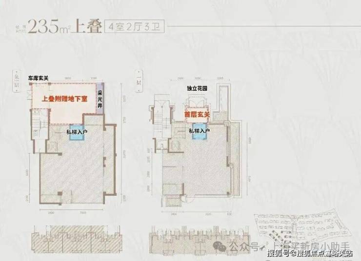 首先,上叠是北向私享入户花园,独门独户,室内私家电梯,尊崇感与私密性都有保障。而且上叠也有地下空间,下单层面积约55㎡,层高达约6.3米,完全做可以做双层使用。
