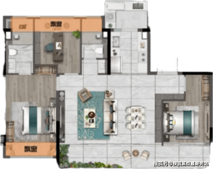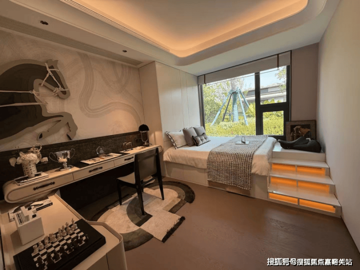 再比如,主卧270度转角飘窗更带来了开阔视野,额外提供了大量可灵活改造的实用空间,如休闲区或储物台,全面提升了居住的舒适度和空间价值。