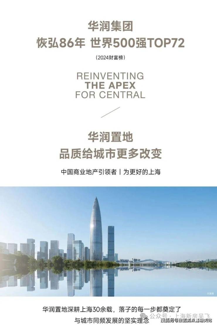 中环置地中心·望云由华润置地开发,作为央企开发商,资金实力雄厚,其在上海有丰富的开发经验,代表作有外滩九里、静安府等高端项目。 中環置地中心望云售楼处电话:400-8894-986 华润置地不仅打造住宅,更致力于城市综合运营,将“地产开发”提升至“城市运营”的高度。