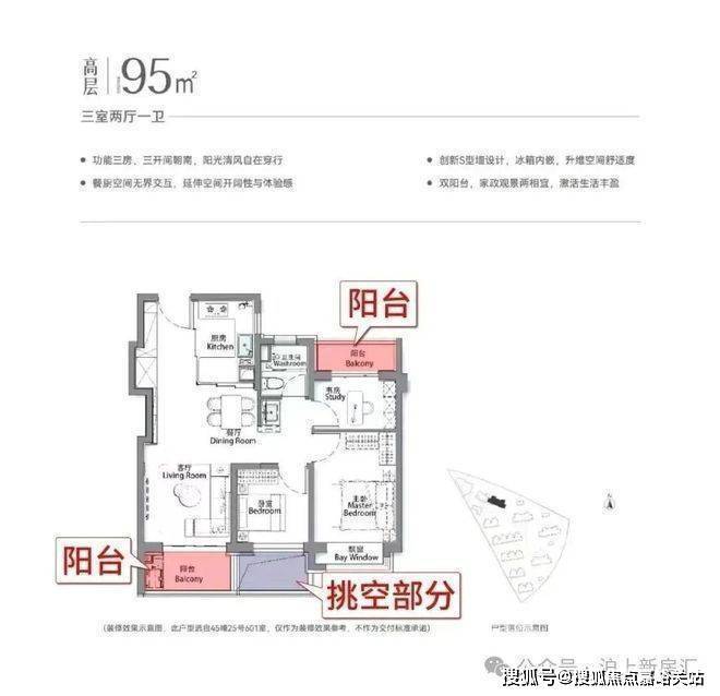 再加上南向大面宽短进深、全卧飘窗、L型转角阳台设计,哪怕小户型89㎡3房,尺度感都超棒,采光和视野更是一流。